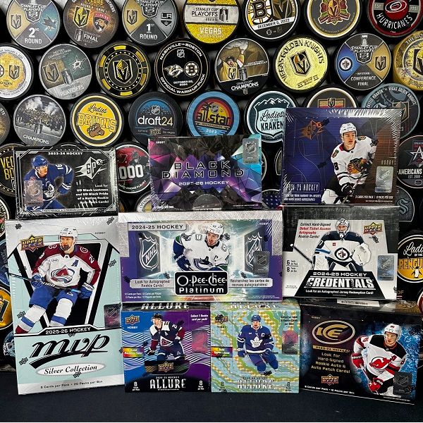Upper Deck 2024-25 Credentials Hockey Hobby! 8 packs, 6 cards per pack. Each Box contains One Autograph and Two Numbered Debut Ticket Access Rookie Cards! Total 48 cards