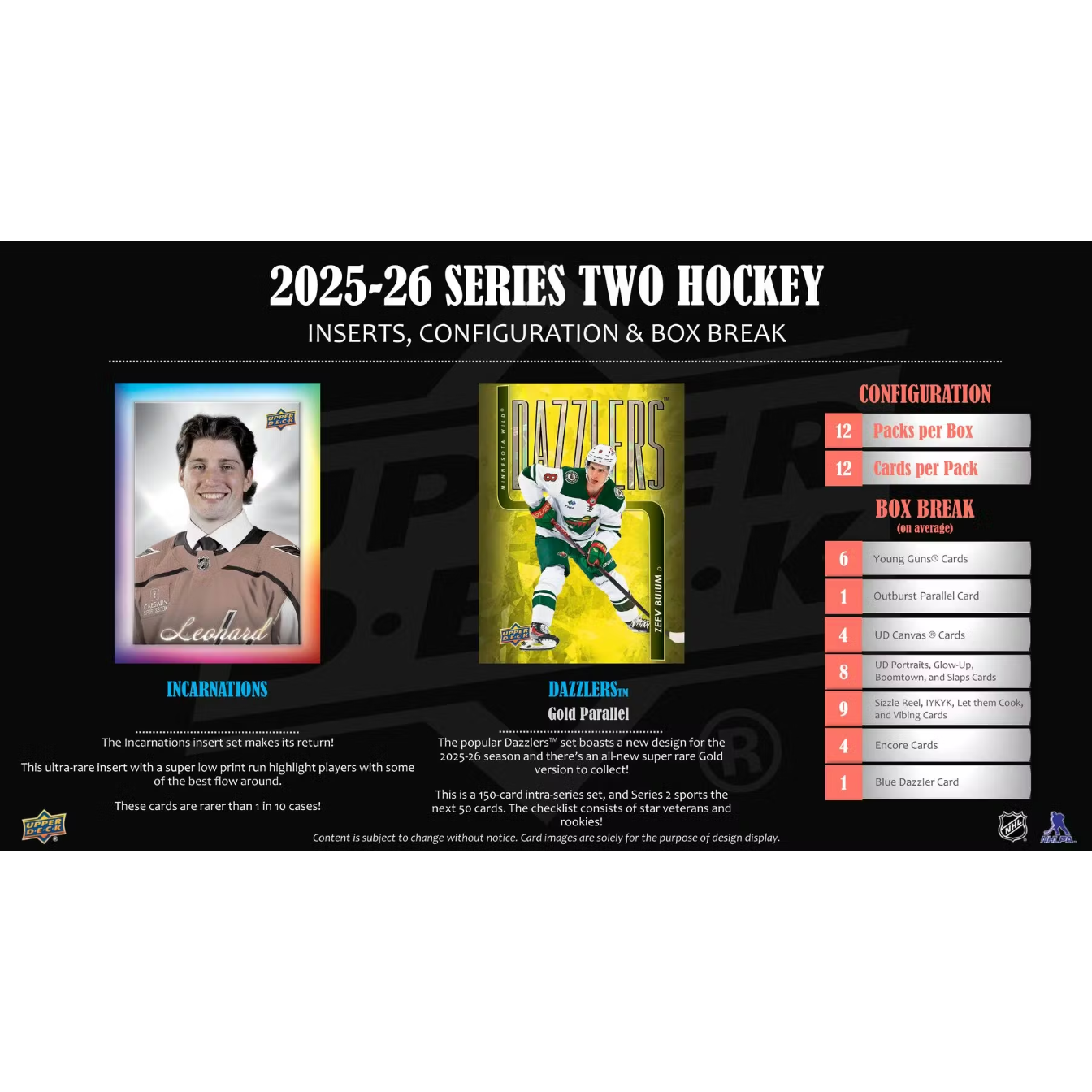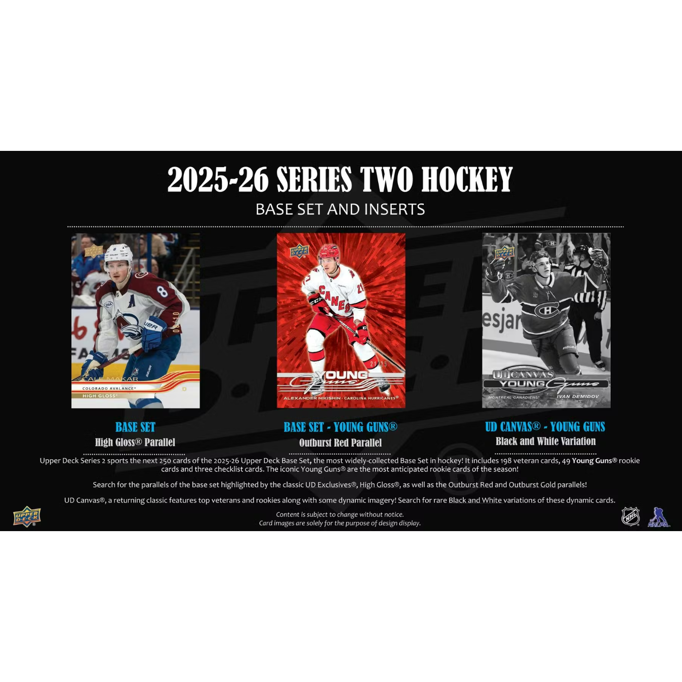 SIX BOXES! NEW RELEASE 2025-26 Upper Deck Series One!12 packs, 12 cards per pack!Each Box contains 6 Young Guns, 1 Outburst Parallel Card, 4 UD Canvas Cards, 8 UD Portraits, Glow-up, Boomtown and Slaps Cards, 9 Sizzle Reel, IYKYK, Let them Cook, and Vibing Cards, 4 Encore Cards and 1 Blue Dazzler on average!Total 144 cards per box.