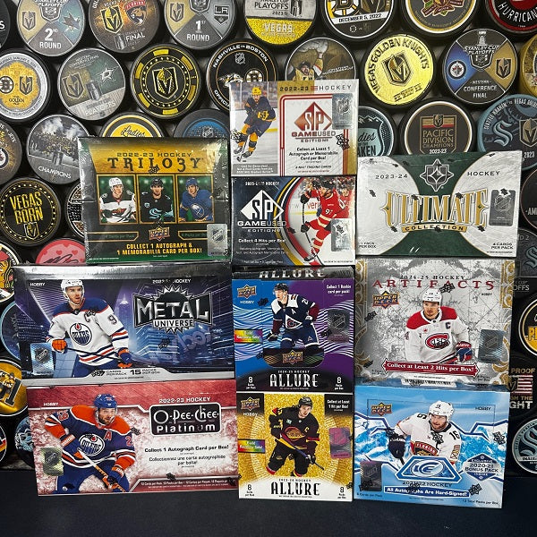 Upper Deck 2025-26 SP Game Used!Every Box contains Four Autograph, Memorabilia, Tech or Autograph Memorabilia Cards, Three Base Set, Authentic Rookies and New Grooves Parallel Cards & Two Base Set, Authentic Rookies and New Grooves Cards! Total 9 cards per box
